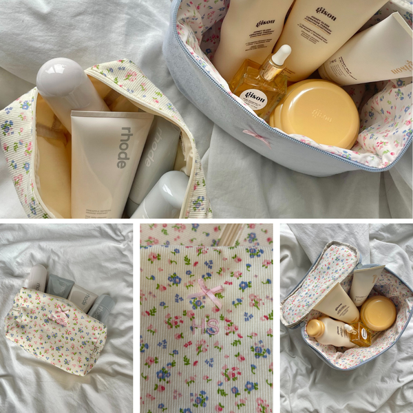La Make-Up Case est suffisamment spacieuse pour vos essentiels du quotidien, tout en restant assez compacte pour vous accompagner lors de tous vos voyages. Le détail nœud et la doublure florale la rendent encore plus adorable et unique.