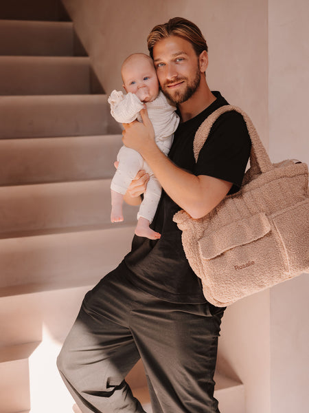 • Unsere wunderschöne Wickeltasche aus weichem Teddystoff ist ein absolutes Musthave. Das durchdachte Design sorgt dafür, dass alles übersichtlich bleibt, während die praktischen Fronttaschen schnellen Zugriff auf Feuchttücher und andere kleine Essentials bieten. Im Inneren befinden sich mehrere Fächer, eines davon ideal für eine Flasche. Die Tasche lässt sich mit einem Reissverschluss schliessen und ganz einfach mit den Klettverschlussschlaufen am Kinderwagen befestigen. Personalisiere die Wickeltasche mit dem Namen deines Kindes. Jede Tasche wird mit viel Liebe in unserem eigenen Atelier bestickt, mit den schönsten Stickgarnen. Hast du dich genauso wie wir in diese Wickeltasche verliebt? Dann ergänze das Set mit der passenden Wickelunterlage, der Pouch und dem Flaschenhalter.