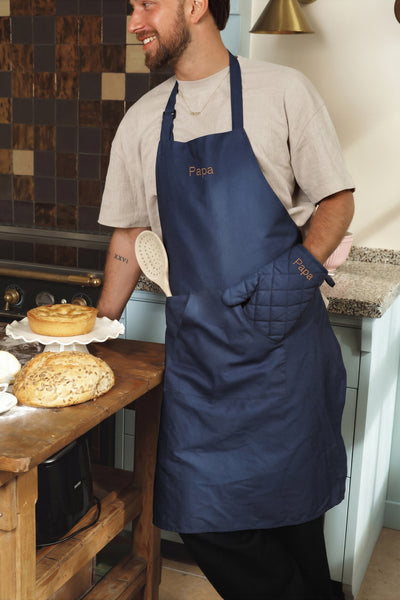 Klassieke apron van 100% katoen in een diepe navy kleur – stijlvol, veelzijdig en duurzaam. De hoogwaardige, ademende stof biedt optimaal draagcomfort, terwijl de eenvoudige pasvorm met brede schouderbanden en praktische zakken zorgt voor gebruiksgemak.