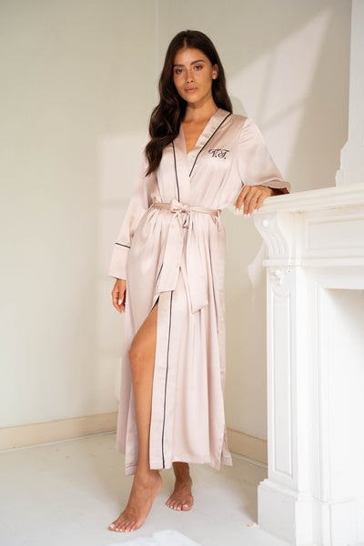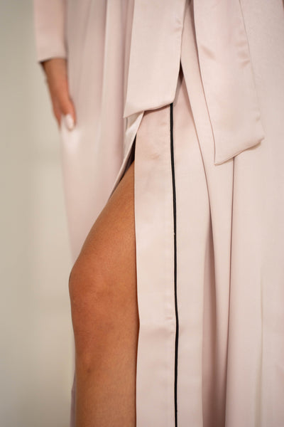 • Go for something unique! Our new kimono is extra long, has subtle piping and has a slit on both sides. Elegant, chic and yet sexy.