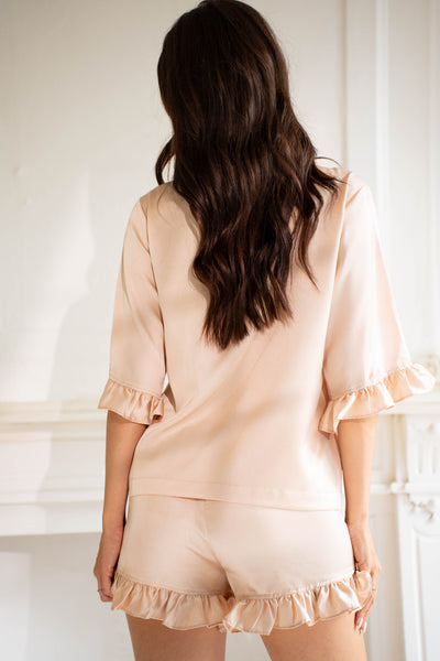 • The Le Olive personalised Ruffle pajamas are super comfortable and a must-have for a great night's sleep. The fabric feels as soft as satin and has stretch for extra comfort. Make your favorite even more special by adding a personalisation of your name or initials on the chest. Sweet dreams.💞