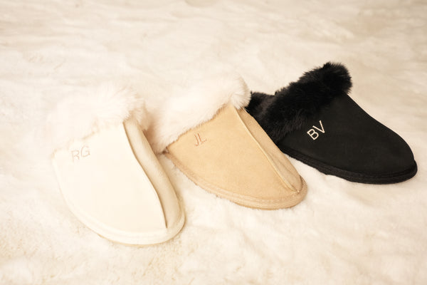 • Treat yourself with our luxurious slippers! The slippers are made of suede and provide wonderfully warm feet and an elegant look. With their beautiful colours, they complement any sleep and loungewear outfit from our Le Olive collection. Perfect for your relaxation moments! Personalise the slippers with your initials. This is done with love in our own atelier, using the finest embroidery threads.