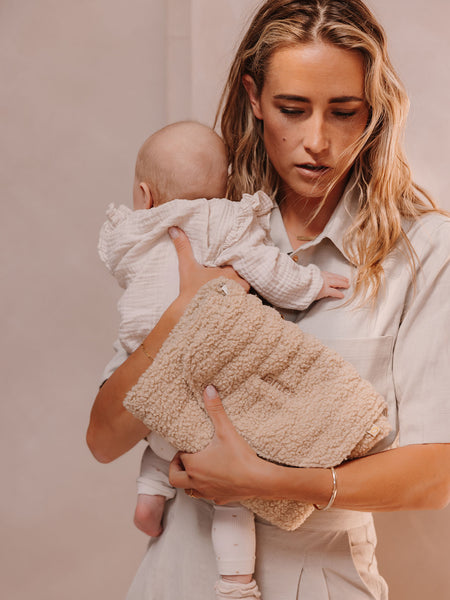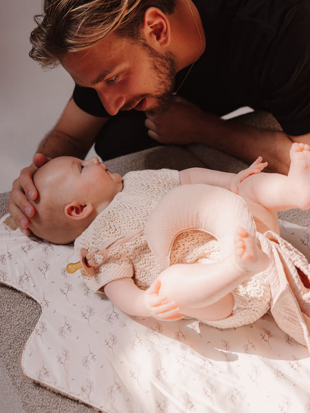 • Our beautiful teddy changing mat is made from wonderfully soft teddy fabric, making diaper changes extra comfortable wherever you are. The mat is lined with a cute print and is easy to clean. It is machine washable and can be folded compactly and secured with Velcro, making it easy to take with you everywhere. Personalise the teddy changing mat with your little one’s name. Each item is embroidered with love in our own atelier with the finest embroidery threads. Have you, like us, fallen in love with this teddy changing mat? Complete the set with the matching changing bag, pouch, and bottle holder.