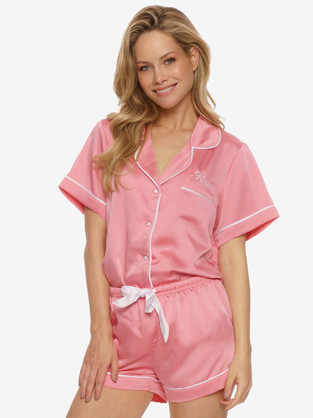 • Personaliza tu pijama con un bordado en la parte delantera. Selecciona un color y personaliza tu pijama con tu nombre o iniciales. Tu misma decides el color de la personalización.