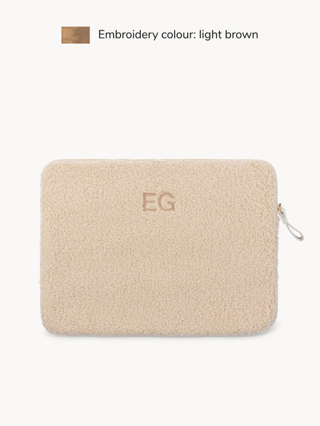 • ¡Esta bolsa para laptop es el complemento perfecto para el Teddy Shopper! Tu laptop de 13 pulgadas estará bien protegida en su interior. Hecha de suave tela de peluche, la bolsa para laptop no solo es funcional, ¡sino también increíblemente a la moda! En su interior hay dos prácticos compartimentos que puedes usar para guardar cables o tu teléfono. Personaliza la bolsa para laptop con tus iniciales para hacerla totalmente tuya. La bolsa para laptop está disponible en varios colores. Completa el conjunto con el Teddy Shopper, la bolsa para laptop, el mini bolso y la billetera.