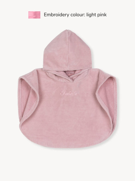 • Op het strand, na zwemles of gewoon 's avonds na een heerlijk warm badje: onze poncho is your essential! De poncho is gemaakt van zacht katoen, wat goed absorbeert en je kleintje heerlijk warm houdt. Personaliseer de poncho met de naam van jouw mini-me. Dit wordt met liefde gedaan in ons eigen atelier, met de mooiste borduurgarens. De poncho is verkrijgbaar in verschillende kleuren en maten.