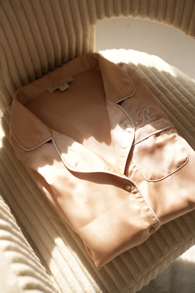 • De Le Olive gepersonaliseerde pyjama is super comfortabel en een must-have voor een heerlijke nachtrust. De stof voelt zo zacht als satijn en heeft stretch voor extra comfort. Maak jouw favorite nog specialer door het toevoegen van een personalisatie van je naam of initialen op de borst. Sweet dreams.
