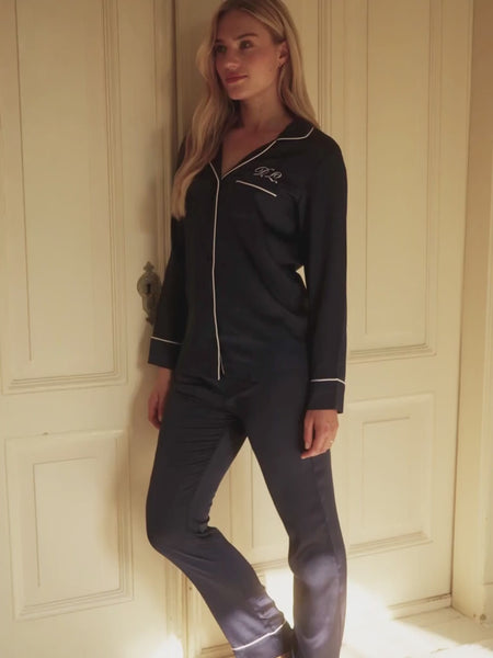 • Onze nieuwe klassieke pyjama's zijn nu vernieuwd in een ultra-zachte, velours fleece. Deze pyjama met satijnen biezen rond de kraag, manchetten en borstzak is heerlijk om te dragen, lekker cosy voor op de bank! Je kan deze nu ook combineren met onze Velours Kimono! Verkrijgbaar in verschillende kleuren. Uiteraard kunnen er nog meer leuke details worden toegevoegd door de pyjama te personaliseren met de mooiste borduurgaren.