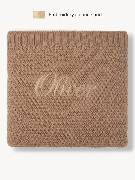 • Chut petit bébé car notre couverture en tricot est un must have dans votre chambre de bébé ! Cette couverture merveilleusement chaude et douce a la taille idéale pour un berceau ou un lit de bébé, mais peut bien sûr aussi être utilisée dans une poussette. Rendez cette couverture tricotée encore plus spéciale en la personnalisant avec le nom de votre bébé. Cela donne non seulement une touche très intime et personnelle à la chambre de bébé, mais c'est aussi un élément que vous garderez pour toujours. Ce détail unique fait de notre couverture tricotée également le cadeau parfait à offrir !