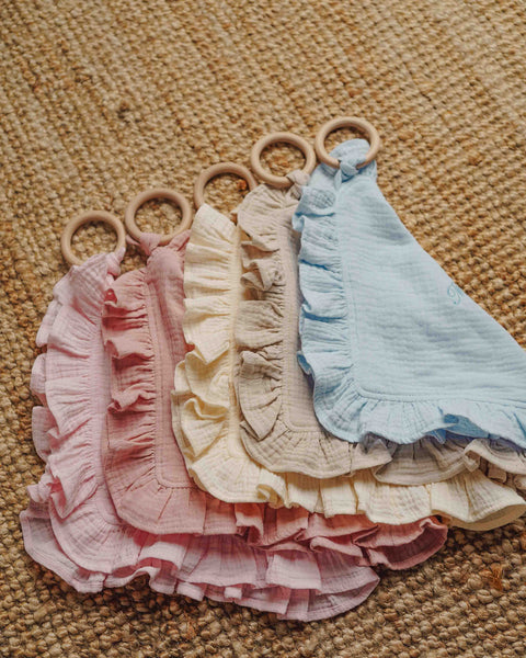 • Les indispensables pour votre bébé : Comme cette attache tétine hydrophile à volants est pratique ! Un anneau de dentition, une sucette et un linge hydrophile. Cette tétine 100 % coton est idéale pour mordre et jouer avec. Le chiffon est également doté d'une boucle pratique pour attacher une sucette ou un anneau de dentition. Le volant classique sur la tétine le rend encore plus mignon à regarder et vous pouvez le rendre encore plus personnel en y ajoutant le nom de votre tout-petit. Vous avez, comme nous, craqué pour la tétine hydrophile à volants ? Complétez ensuite l'ensemble avec les serviettes hydrophiles à volants en petites et grandes tailles.