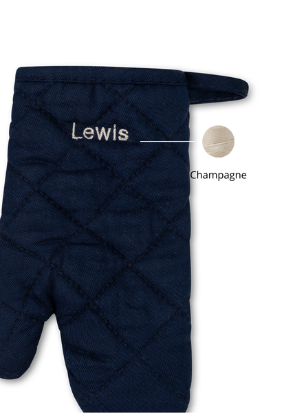 • Stoere ovenwant voor kids van 100% katoen in een diepe navy tint – comfortabel en veilig voor kleine handjes. De gewatteerde voering beschermt tegen warmte en zorgt voor een goede grip. Personaliseer met naam of initialen – ideaal als uniek cadeau voor jonge keukenhulpjes.