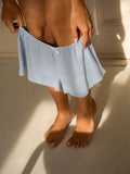 • Fais de beaux rêves ! Ce magnifique pyjama court en coton est orné de jolis détails subtils comme un petit nœud et de délicats boutons sur le short. Une touche charmante qui vous garde au frais pendant les nuits chaudes. Personnalisez votre pyjama avec votre prénom ou vos initiales. Chaque pyjama est brodé avec amour dans notre propre atelier avec les plus beaux fils à broder. Faites-vous plaisir ou offrez ce magnifique ensemble de pyjama personnalisé à quelqu’un de spécial. Pour rendre votre cadeau encore plus unique, choisissez notre emballage cadeau de luxe. Nous nous occupons de tout avec plaisir. Vous êtes tombée amoureuse de ce pyjama court tout comme nous ? Complétez l’ensemble avec les chaussons assortis. Commandez dès aujourd’hui.