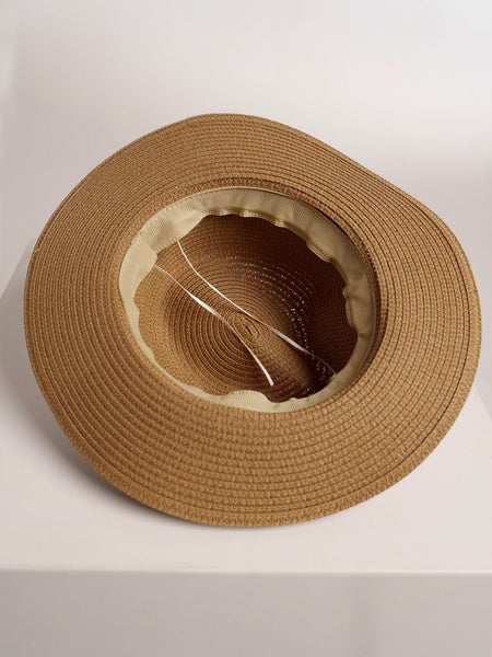 Chapeau de Paille Deluxe Brun Avec Lanière beige