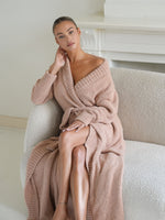 • Attention: le peignoir est tricoté dans un tissu épais, ce qui peut le rendre plus long que ce qui est indiqué dans le tableau des tailles en raison de son poids.